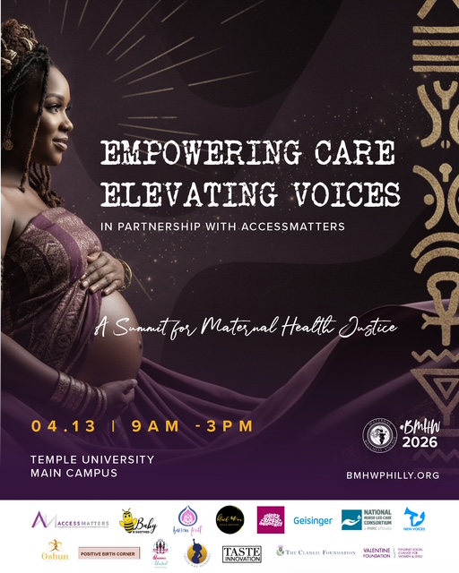 | Registration is Now Open! Black Maternal Health Week 2026 Black Maternal Health Week 2026 will be held from April 11-17 with many events throughout the Philadelphia area. As a part of Black Maternal Health Week 2026, AccessMatters in partnership with Oshun Family Center will host Empowering Care, Elevating Voices: A Summit for Maternal Health Justice, on April 13, 2026, from 9am to 3pm at Temple University in Philadelphia, PA. Community leaders, advocates, providers, and partners will collectively bridge expertise and experience to create healthier births and futures for Black families and communities. Check out featured speakers and register here. Be sure to secure your free spot early. We look forward to seeing you there! |