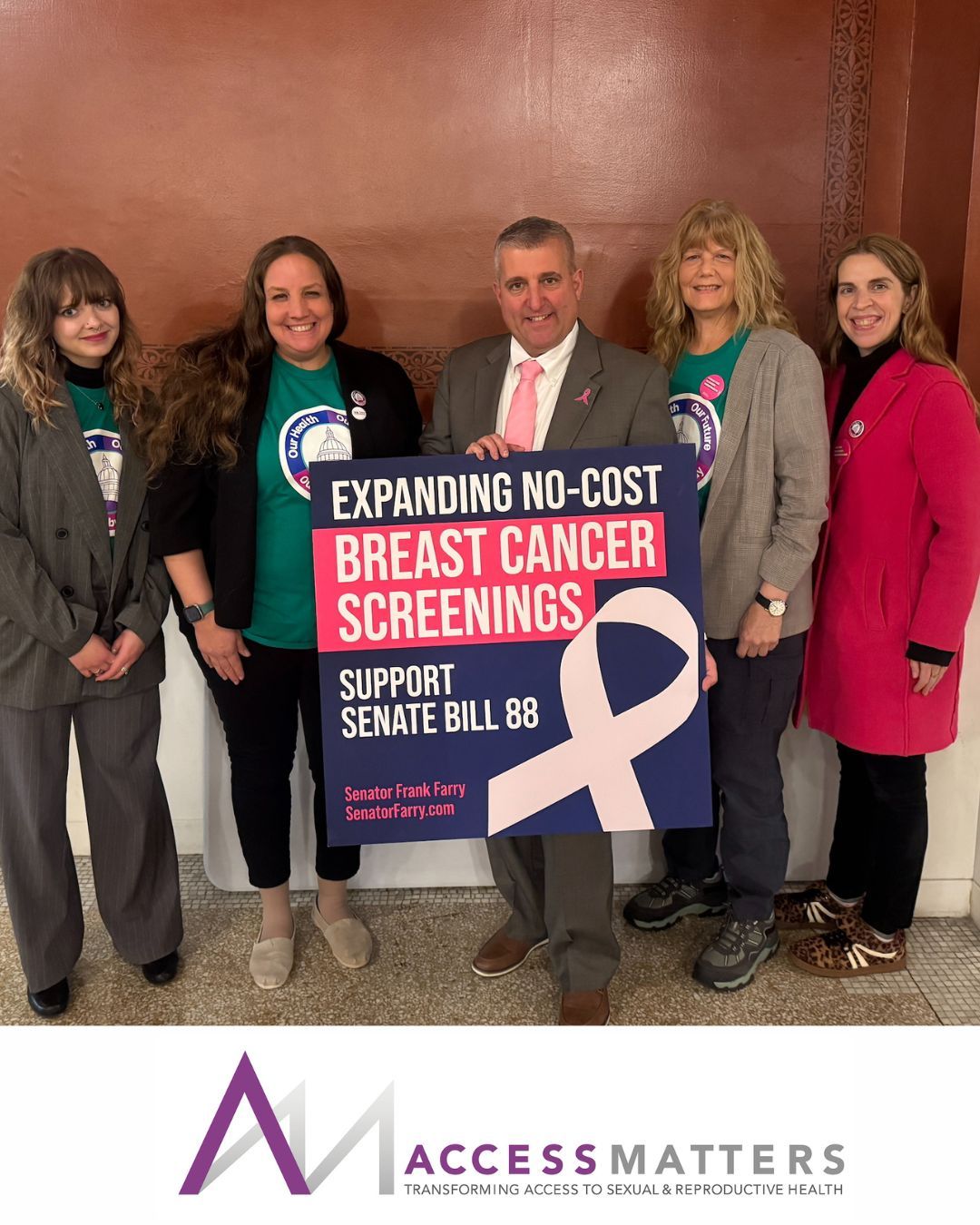 On November 19, Senate Bill 88 was passed by the Pennsylvania House. The bill, which would eliminate all out-of-pocket costs for diagnostic breast imaging – including MRIs, mammograms, and ultrasounds – will reduce barriers to care for thousands of Pennsylvanians across the state. AccessMatters staff met with Senator Frank Farry, who introduced the bill, on the day of its passage and discussed the importance of affordable, accessible reproductive health care services.