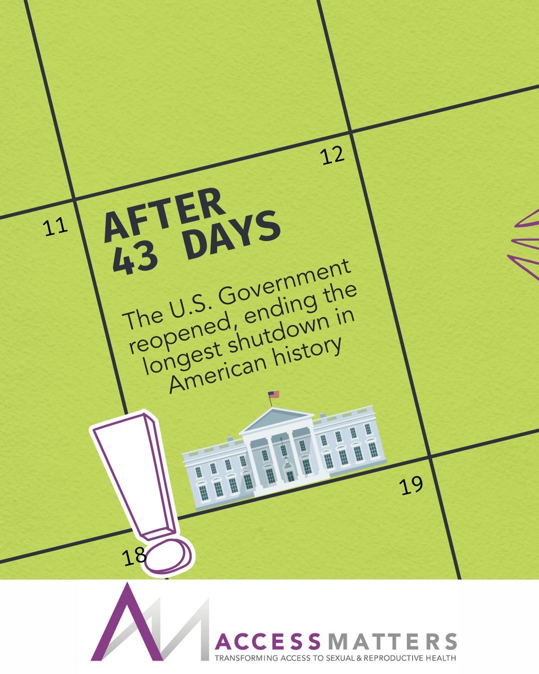 In November, the federal government shutdown ended after a historic 43-day closure. The bill extends last year’s spending levels for most federal initiatives through January, with some key programs such as the Supplemental Nutrition Assistance Program (SNAP) funded through September 2026. Affordable Care Act subsidies at the center of the budget negotiations remain unsolved, with Congress members agreeing to hold a mid-December vote. As a part of the budget deal, reductions in force that occurred during the shutdown have been reversed, including staff at the Office of Population Affairs, the U.S. Department of Health and Human Services (HHS) office that manages the Title X Family Planning program and the Teen Pregnancy Prevention Program.