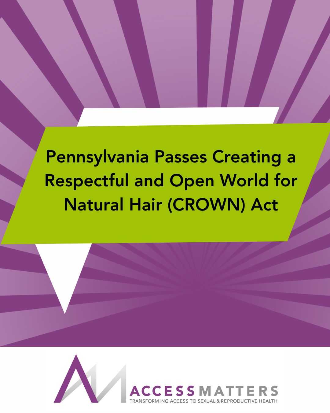 Pennsylvania has become the 28th state to pass the Creating a Respectful and Open World for Natural Hair (CROWN) Act banning discrimination based on hair types, textures, or styles. The bill, introduced by Representative LaTasha Mayes and Speaker of the House, Joanna McClinton, introduces important protections for Pennsylvanians. AccessMatters commends the efforts of all legislators, community members, and advocates in advancing this important bill.